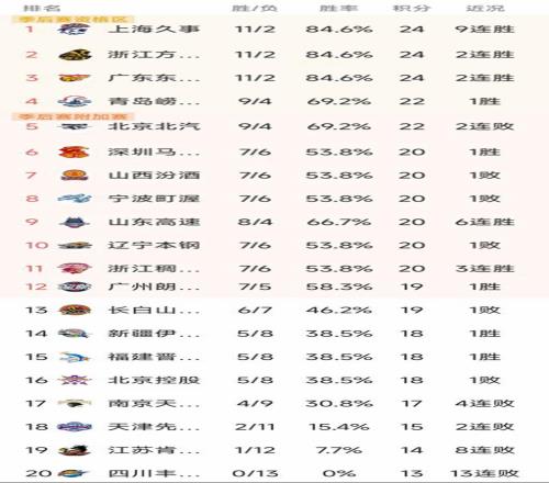 CBA常規(guī)賽第13輪結(jié)束了所有比賽,最新積分榜如下!